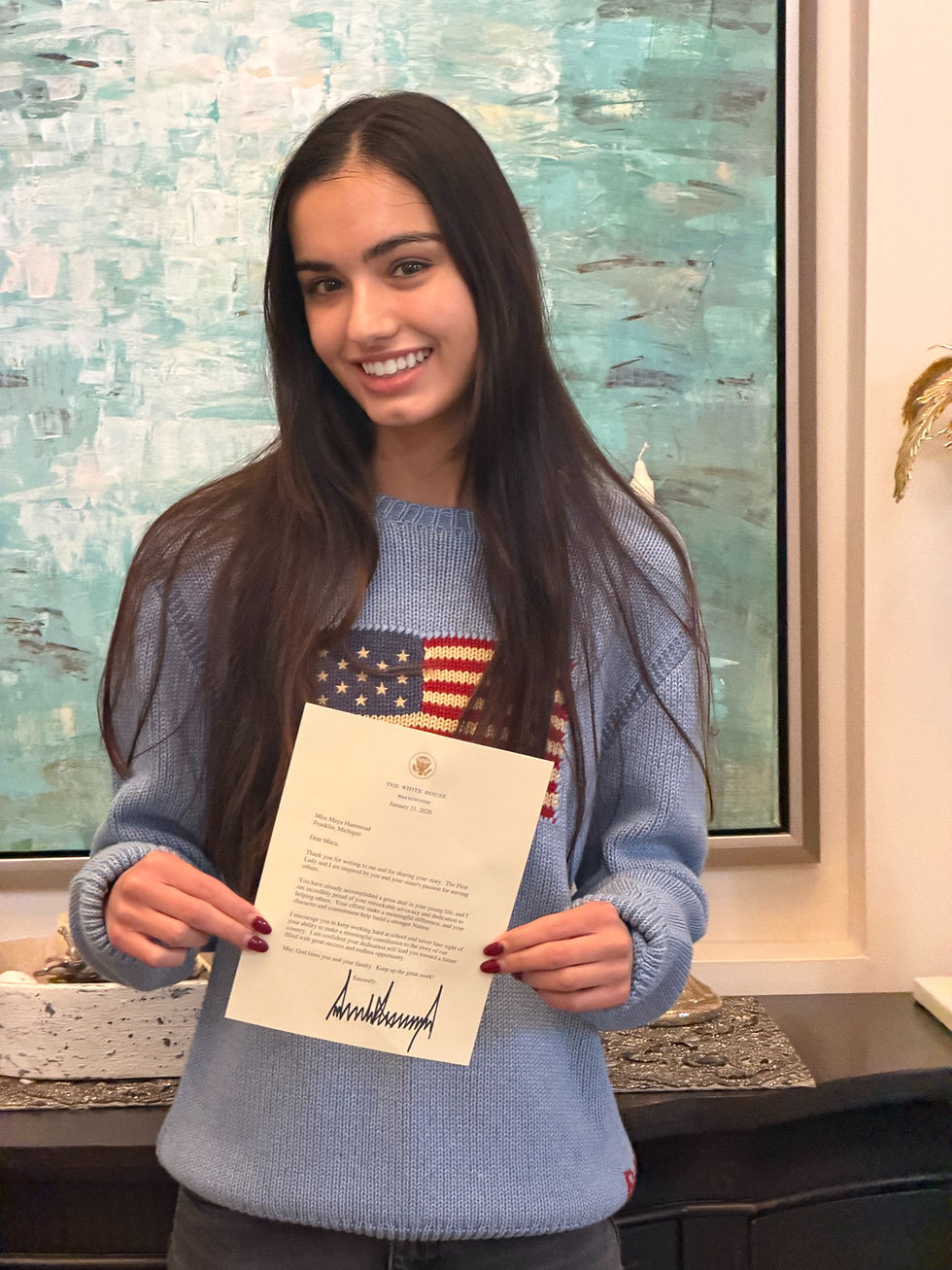 Twin sisters Maya and Lara Hammoud were incredibly moved to receive this personal note from the President Trump acknowledging their advocacy and dedication to serving others. To hear that their efforts with the The Perception Foundation is making a meaningful difference and helping to build a stronger nation is a level of recognition we never expected, but deeply appreciate.